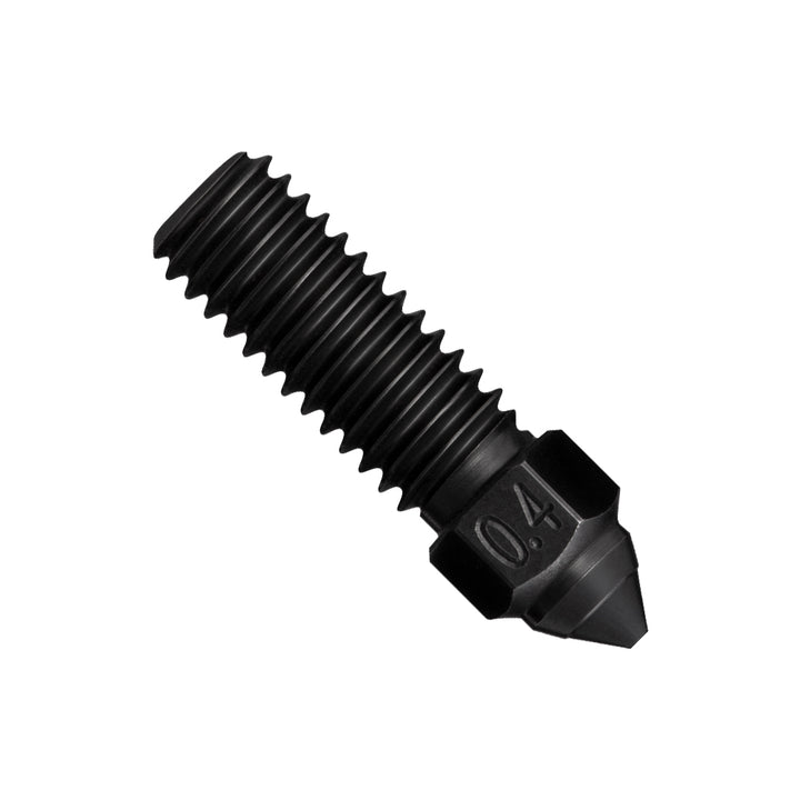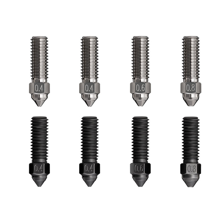 Las boquillas están hechas de una aleación de cobre con alta conductividad térmica de hasta 330 W/m.k, lo que garantiza un calentamiento uniforme. La boquilla tiene un volumen el doble de grande que las boquillas comunes y soporta altas velocidades de impresión de hasta 600 mm/s. Un recubrimiento uniforme de níquel reduce la adhesión de los filamentos y asegura una extrusión más suave. La construcción de acero endurecido ofrece alta dureza, mejor resistencia al desgaste y una vida útil más larga. Además, la boquilla es resistente a la corrosión, lo que aumenta aún más su durabilidad.