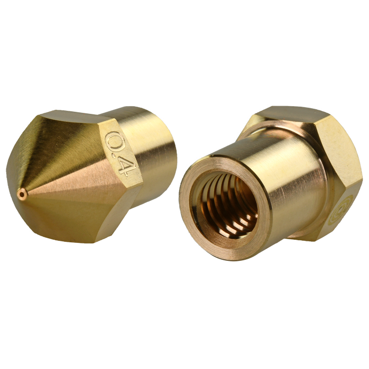 Todas las boquillas de PrimaCreator están fabricadas con latón o acero de alta calidad y producidas en una fábrica moderna. La tolerancia es inferior a ± 0,01 mm, lo que significa que su filamento obtiene una superficie muy lisa y clara al extruirse, lo que conduce a mejores resultados de impresión.
