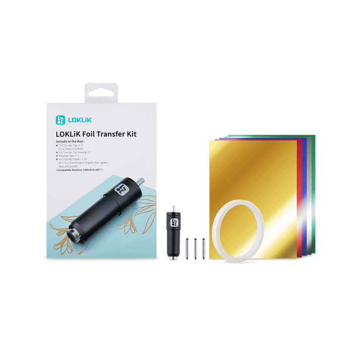 Kit de transferencia de foil LOKLiK iCraft™ – el set completo para efectos metálicos elegantes en tarjetas, invitaciones, cajas y proyectos creativos de bricolaje. Con puntas intercambiables y láminas de transferencia de colores, se pueden crear detalles finos así como acentos intensos.