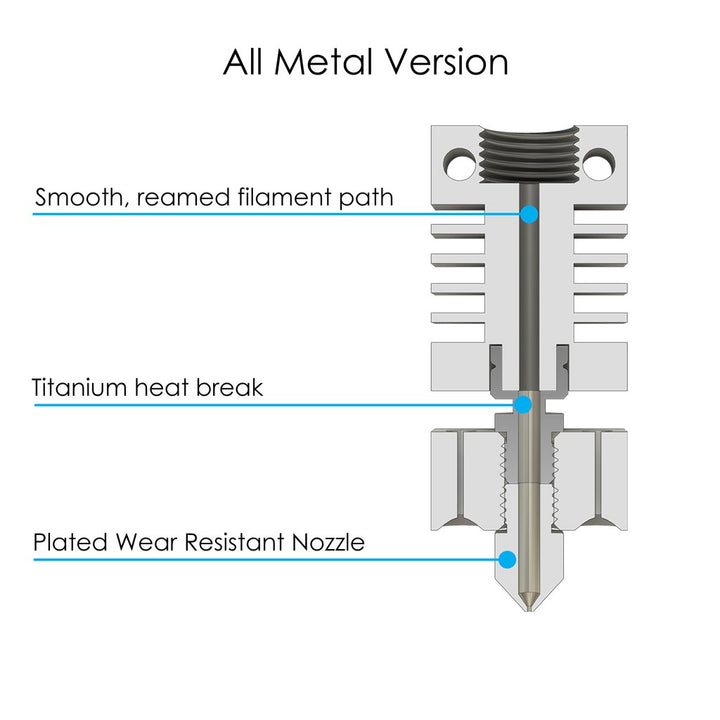 - Heat Break de Titanio: Fabricado con aleación de titanio para el mejor aislamiento térmico.