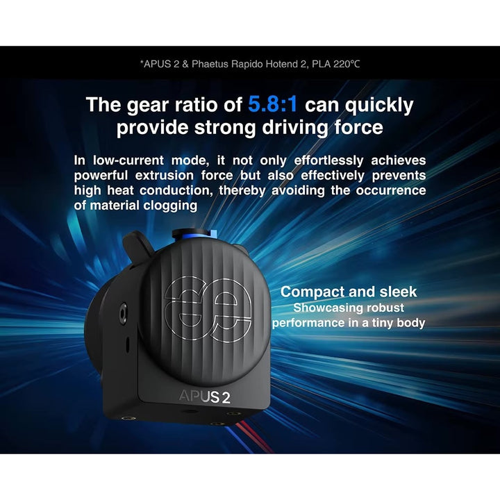 Mejore su experiencia de impresión con el extrusor APUS 2: una combinación de funciones de vanguardia y facilidad de uso que satisface las necesidades tanto de usuarios profesionales como entusiastas.