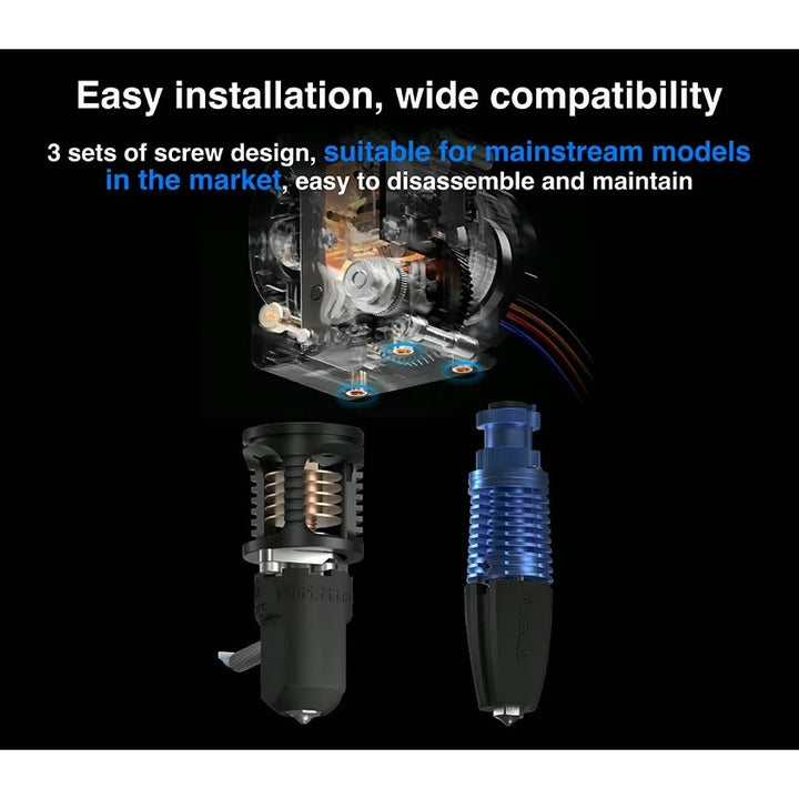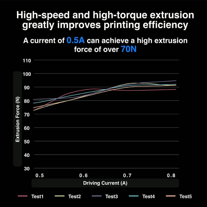 Con una impresionante relación de transmisión de 5,8:1, el extrusor proporciona un alto torque incluso en modo de bajo consumo. Esto garantiza una extrusión potente y minimiza los atascos de material mediante una eficiente disipación de calor.