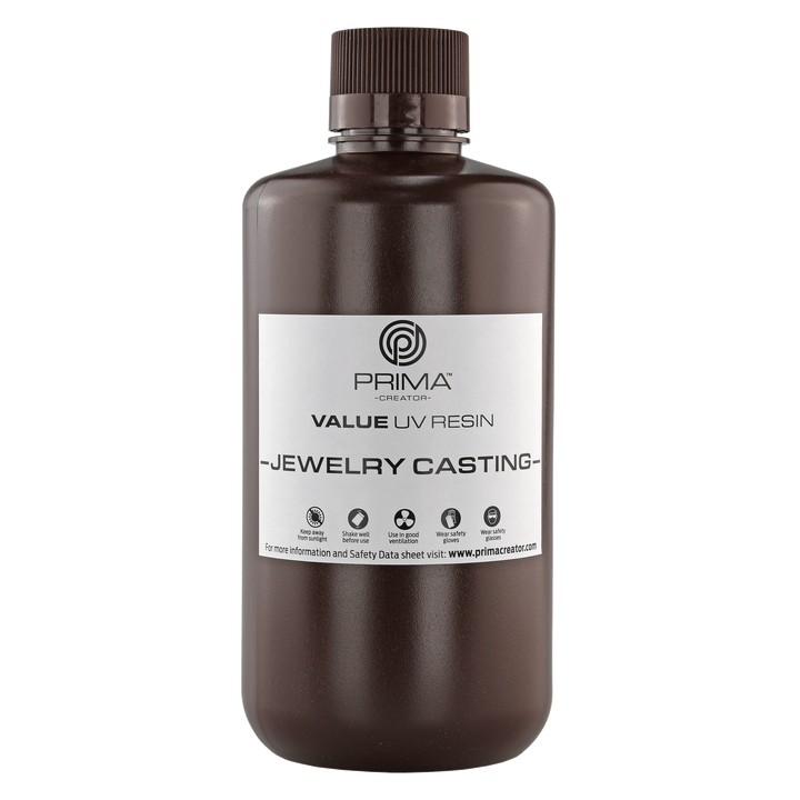 Die PrimaCreator Value Jewelry Casting Resin wurde speziell für die Schmuckherstellung entwickelt und überzeugt durch einfache Verarbeitung, no-ash Burnout-Eigenschaften, geringe Schrumpfung und die Fähigkeit, feinste Details präzise wiederzugeben. Damit ist sie die ideale Wahl für detailreiche Schmuckteile wie Ringe, Anhänger oder Prototypen.