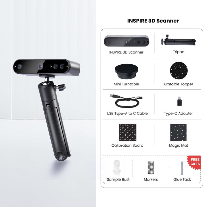 El acceso a escáneres 3D potentes estuvo limitado durante mucho tiempo por sus altos precios. Con el Revopoint INSPIRE, nuestro escáner 3D más rentable, eso cambia. Este escáner portátil compacto, diseñado para escanear objetos medianos, pone escaneos 3D de alta calidad al alcance de todos. Ya sea que sea ingeniero, diseñador, artista o entusiasta de la impresión 3D, el INSPIRE le permite crear sin barreras y dar vida a sus proyectos con impresionantes detalles 3D.