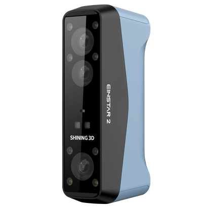 El EINSTAR 2 es un escáner 3D compacto e inalámbrico para estudios y trabajos al aire libre. Con solo 420 g de peso, un sistema de luz híbrido de 17 líneas láser azules y tecnología IR-VCSEL, además de hasta tres horas de duración de batería, ofrece resultados profesionales de escaneo en casi cualquier entorno.