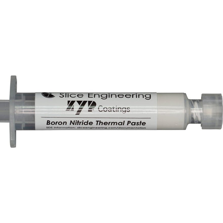 La pasta térmica de nitruro de boro de Slice Engineering mejora la conductividad térmica y actúa como agente separador. A diferencia de las uniones antiadherentes, el nitruro de boro no es conductor eléctrico, eliminando así el riesgo de cortocircuito en su cartucho calefactor o termistor.